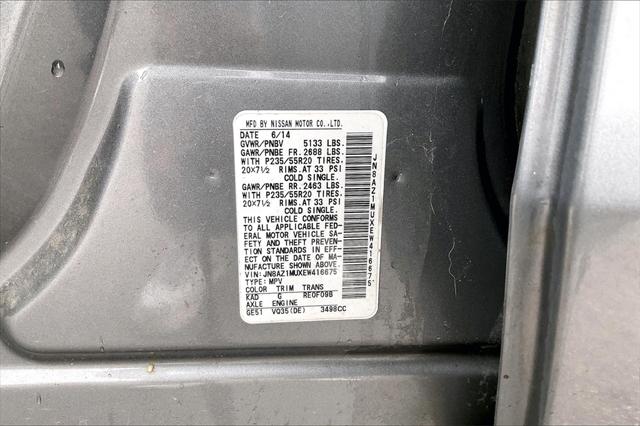 Gun Metallic 2014 Nissan Murano LE FWD CVT with Xtronic 3.5L V6 DOHC **CLEAN VEHICLE HISTORY REPORT** **LOCAL TRADE IN** Murano LE 3.5L V6 DOHC CVT with Xtronic FWD 20"" Aluminum Alloy Wheels Exterior Parking Camera Rear HDD Navigation System High intensity discharge headlights: Bi-Xenon Power Liftgate Power moonroof Radio: AM/FM/Single CD Player w/Bose Audio System Security system Speed control.Were confident we have the right price for you the right quality for you the right level of trust for you and the proper respect for how you want to purchase an automobile. We pride ourselves on the best and fastest way to get all the information you need to make well-informed decisions all in 30 minutes or less. Express Buying is Fast Simple Friendly and Fair. It all adds up to the right car buying experience for you. Youll simply love the way we do business. Need specific reasons to start here? Have a look at the list below: Upfront prices. Zero hassles. Homer Skelton Ford makes it easy to find the right car for you at a price you can trust. Your car's no-haggle price is the same online as it is on the lot and we will validate our pricing 100% of the time. We also offer very flexible financing options. We stand behind our cars. All of our used cars are Quality Certified and come with a free vehicle history and safety recall report 72-Hour Money-Back Guarantee and 30-Day Limited Warranty. Certain vehicles may have unrepaired safety recalls. We'll buy your car even if you don't buy ours. Our fast free appraisal process along with our partnership with Kelly Blue Books Trade-In Buying Center ensures the most money for your Trade-In. KBB will write you a check for your automobile or we will! Either cash offer is good for seven days. And we'll buy any car no matter its age or condition. Recent Arrival! Odometer is 35715 miles below market average!
